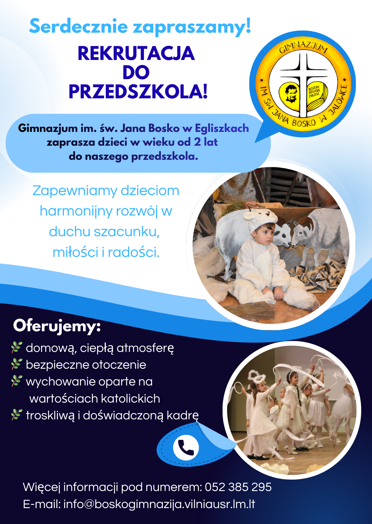 2026-02-19 Gimnazjum im. św. Jana Bosko w Egliszkach zaprasza dzieci w wieku od 2 lat do naszego przedszkola.